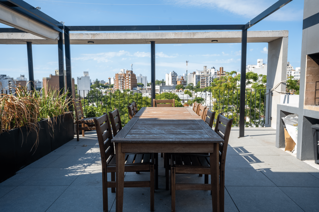 En la azotea, el edificio incorpora espacios comunes pensados para el disfrute cotidiano: barbacoa, solárium y parrilleros, ideales para compartir momentos y aprovechar las vistas abiertas de la ciudad.